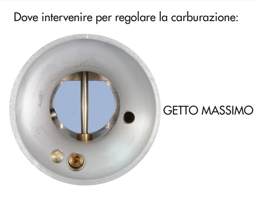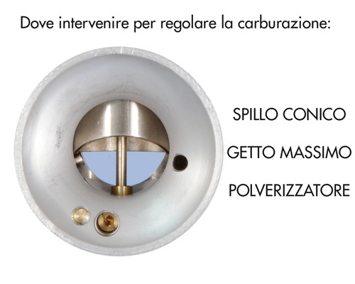 Aumentando il diametro del polverizzatore si va ad arricchire la miscela.