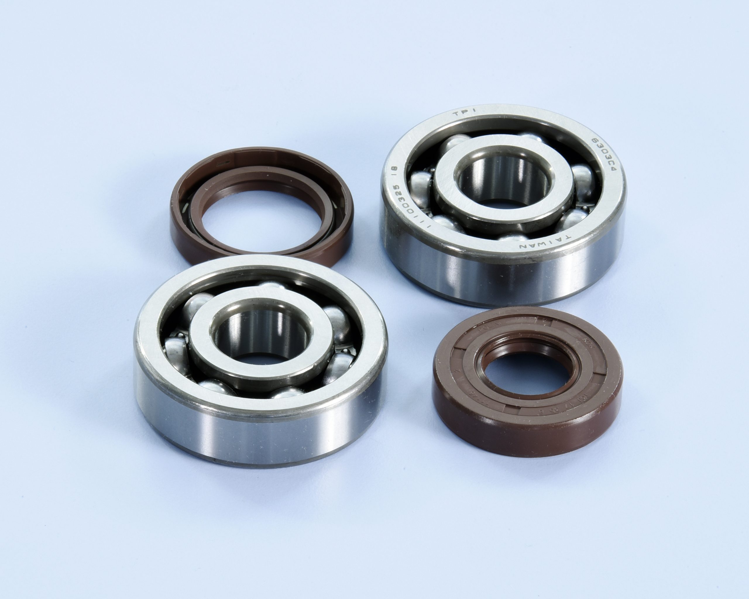Polini crankshaft overhaul kits are designed to deliver maximum efficiency, durability, and performance, making them ideal for both original and tuned engines. Each kit includes high-quality bearings and FKM (Viton) oil seals, and is available in different versions to cover the entire range of 2-stroke scooters, 50 cc enduro and motard motorcycles, classic Vespa models, and vintage mopeds.