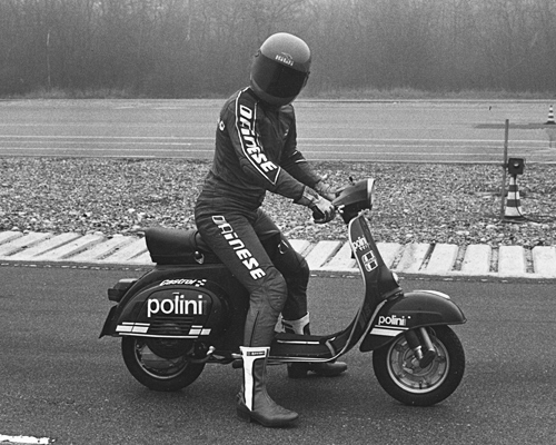 Piero es el piloto de la familia: le acompañan a las carreras sus hermanos, que trabajan juntos para dar un impulso extra primero a su Gerosa, luego a la CMK y después a la Ancillotti 50. Su pasión por la puesta a punto les lleva a trabajar día y noche para encontrar soluciones que combinen un mayor rendimiento y fiabilidad. Con sus «recetas», los tres hermanos «convierten lo mejor en lo máximo». Trabajan en todos los motores -primero Ancilotti, luego Fantic, Minarelli y Sachs- y en todos los componentes -motores, cilindros y cajas de filtro- hasta kits completos. Los resultados son extraordinarios: todo el mundo quiere Polini. Es 1975 y Franco abre una tienda de recambios para motos en Bérgamo y empieza a producir piezas y a venderlas en Italia y en el extranjero: comienza la historia de Polini.