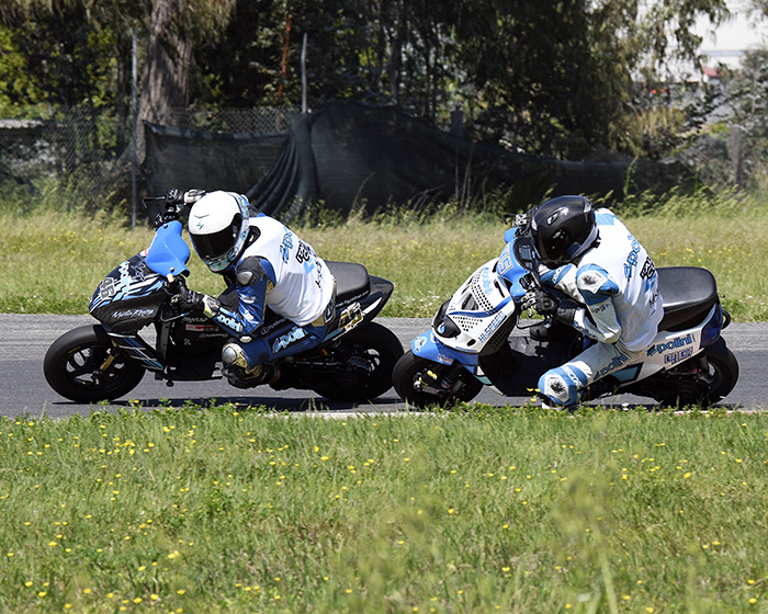 Unified grid for the 70 Amateurs and the Polini South Cup category 70 Amateurs. In Competition 1, not a brilliant start for Marco Modesti, third at the first corner behind Davide Armanio and Mattia Cielo. The race continues with the riders at the same positions until Armanio makes a mistake thus opening the way to Cielo. Modesti picks up the pace and sticks to its taillight until he overtakes him and wins by margin.