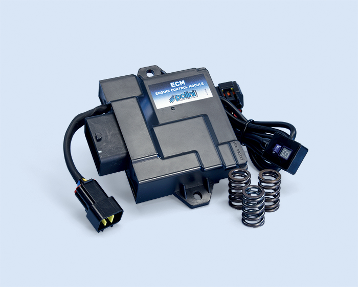 Pour effectuer tout type de configuration, il est essentiel de remplacer le boîtier. L’ECM avec Ressorts soupape Polini pour Aprilia SXR 50 4T E5 a été étudié et mis au point par le département courses Polini après des nombreux tests et essais. La mise à niveau de l’unité de commande Polini permet de choisir entre trois mappages différents, offrant la possibilité de personnaliser davantage son véhicule.